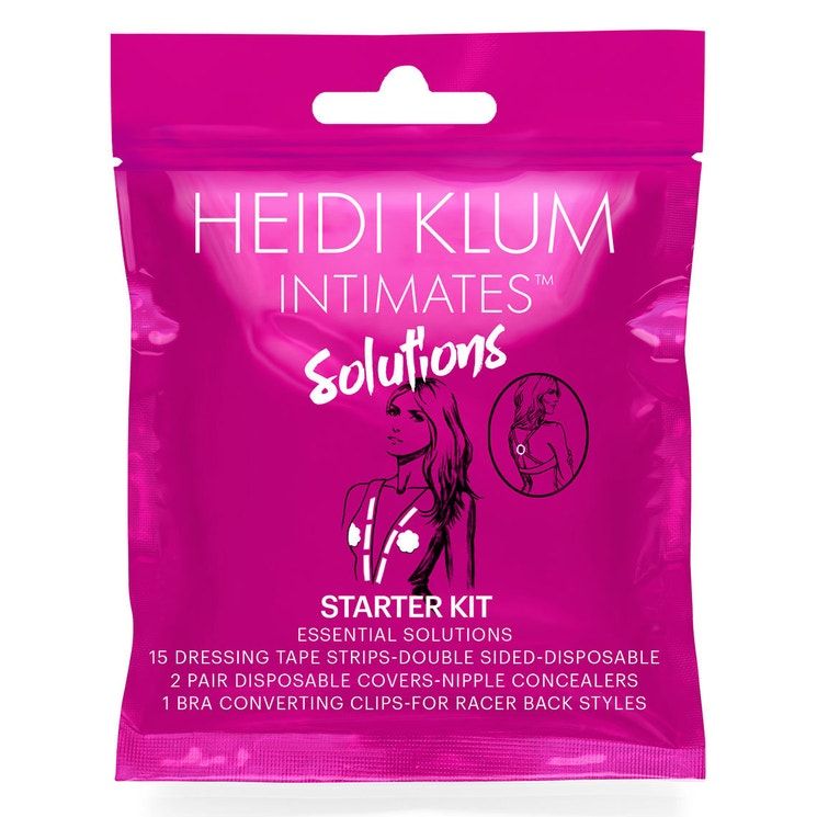 Набор для решения маленьких проблем. В составе: клейкая лента (15 полосок для фиксации одежды и белья на теле), наклейки на соски тканевые, клипса для бюстгальтера.