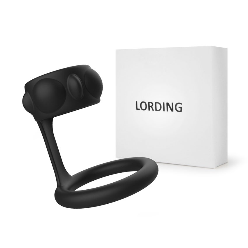 Черная эрекционная насадка на пенис. Внутренний диаметр колец - 3 и 3,9 см.