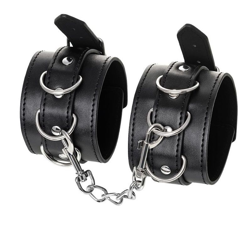 Черные оковы с металлической отделкой – брутальные ограничители свободы. К тому же, они на самом деле весьма жестко обхватывают ноги и надежно соединяют их между собой цепочкой на карабинах. Три кольца для крепления дают возможность дополнить поножи аксессуарами и использовать различные варианты фиксации. Длина оков позволяет использовать их практически на любой размер ног. Отрегулировать размер и силу обхвата легко с помощью ремешка и металлической пряжки. Черные оковы с металлической отделкой – это стиль и функционал. Теперь Доминант покажет, что значит грубое обращение и полный контроль над свободой. Ширина - 6 см. Длина сцепки - 15,5 см.