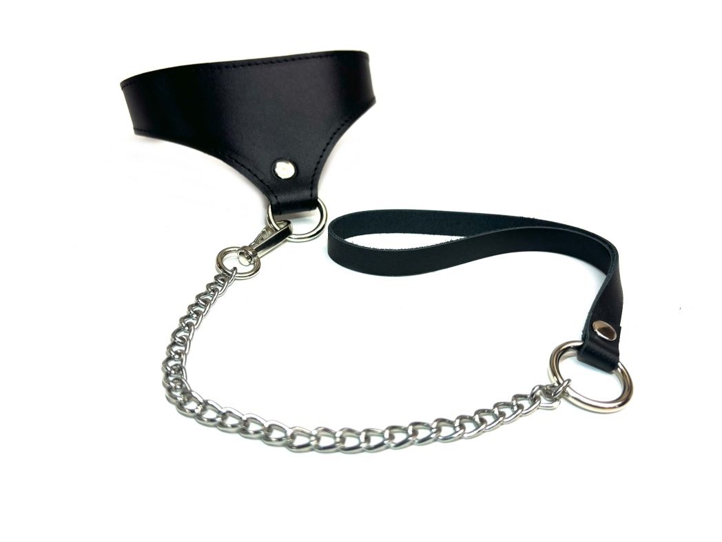 Комплект: ошейник с поводком Black Phoenix - дерзкий и сексуальный вариант, который точно понравится любителям необычных аксессуаров. Изделия выполнены из натуральной кожи, декорированы надёжной металлической фурнитурой. Регулировка обхвата ошейника в диапазоне от 32 до 40 см, подклад выполнен из нежнейшей овечьей кожи, что подарит только комфортные ощущения во время использования, а элегантная форма аксессуара даёт волю фантазии, эффектно подчеркивая грудь, его можно носить отдельно от поводка, дополняя вечерние образы. Общая длина поводка 44 см, ручка-петелька выполнена из натуральной черной кожи, на другом конце расположен изящный металлический карабин.
