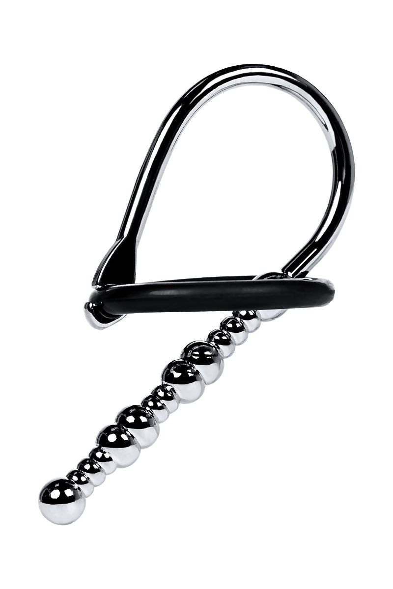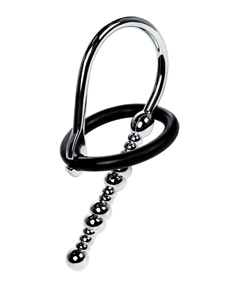 Уретральный плаг в форме бусин различного диаметра для стимуляции уретры. Мягкое кольцо для фиксации на головке. В комплект входят 2 кольца. Рабочая длина - 5 см. Минимальный диаметр - 0,4 см. Диаметр колец - 2,5 и 3 см.