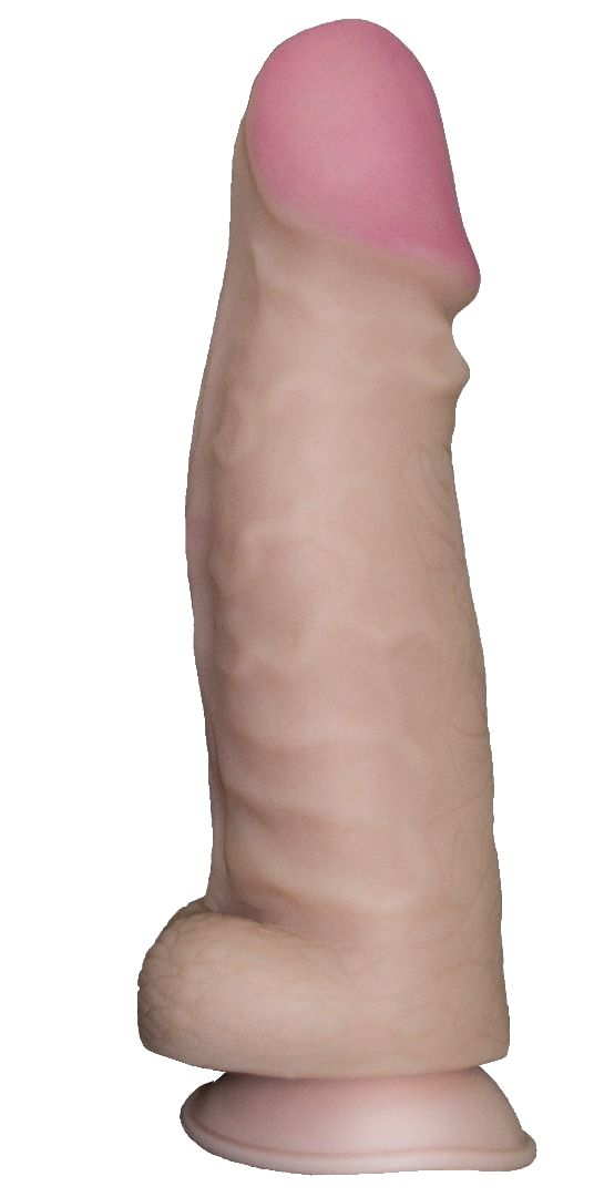 Наружная оболочка сделана из мягкого материала неоскин. Внутри каркас из более плотного, эластичного полимера. На присоске.